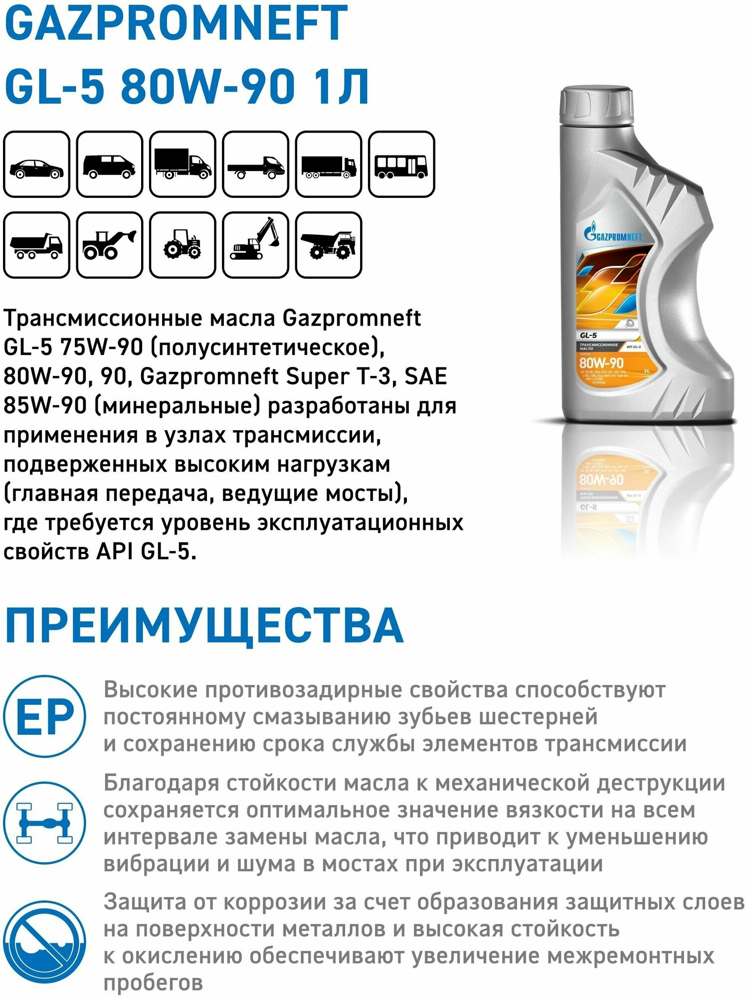 Масло трансмиссионное gazpromneft gl-5 80w90 1 л 2389901361