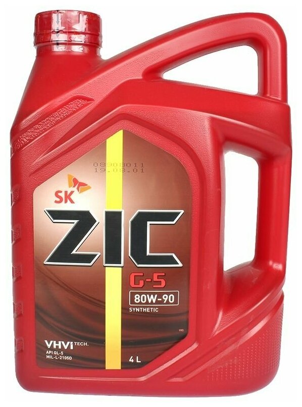 Масло трансмиссионное синтетическое ZIC G-5 80W-90 (4л) (162633) ZIC-G-5-80W90-4L
