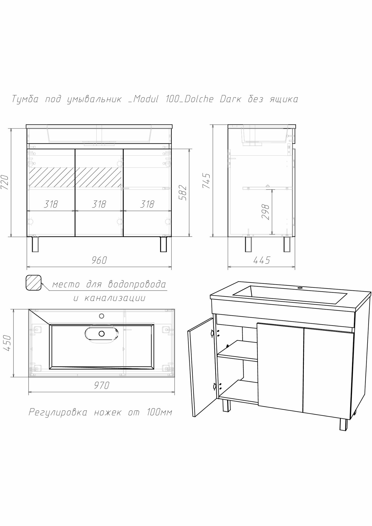 Aquarius Тумба под умывальник "Modul 100"Dolche Dark без ящика Домино тумбы под умывальник в Курчатов