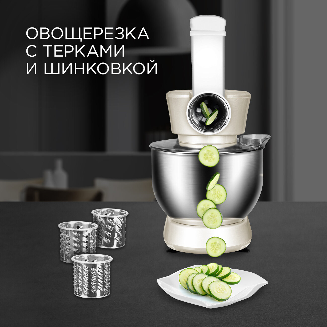 Кухонный комбайн REDMOND RKM-4040, 1200 Вт, бежевый