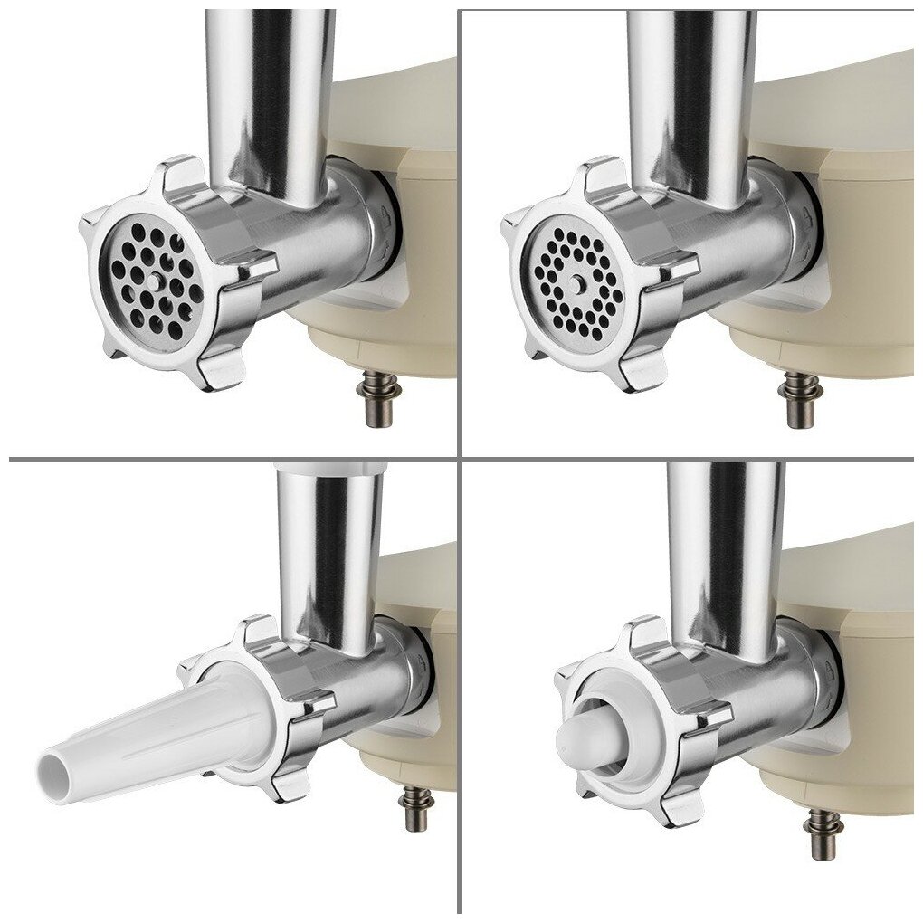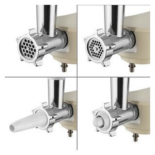 - венчик для взбивания / насадка / крюк для замеса теста / 3 насадки для нарезки/шинковки / диск для картофеля фри / диск для приготовления соусов