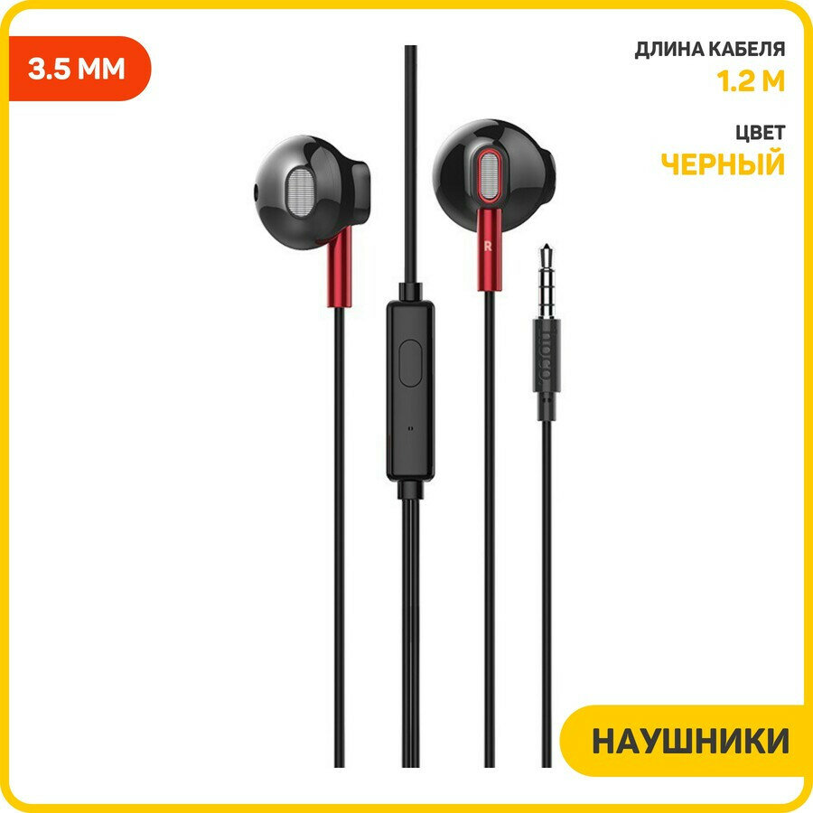 Наушники проводные HOCO M57 вкладыши с микрофоном, 1,2 метра, черный (21/210)