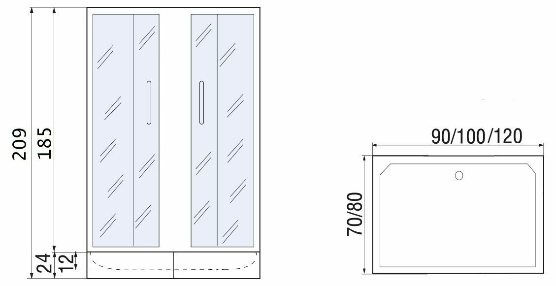Душевое ограждение River MORAVA XL 120/80/24 МТ, 120x80x185