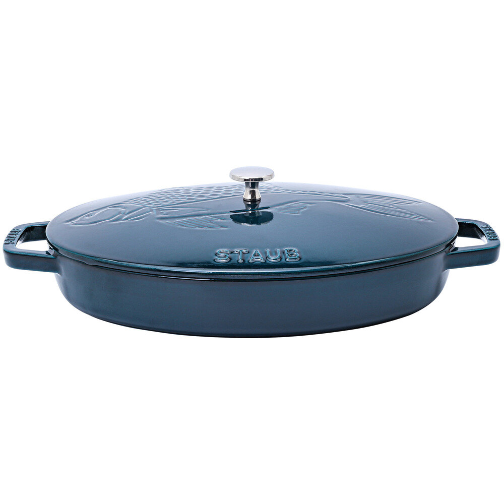 Сковорода овальная для рыбы Staub , 32 см, с чугунной крышкой, морская (11223337)