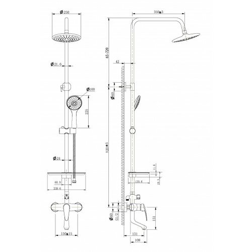 Душевая стойка Lemark Linara LM0462C для ванны и душа с регулируемой высотой штанги