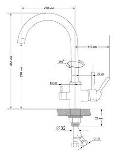Смеситель для кухни (мойки) с подключением к фильтру для питьевой воды, высокий поворотный излив V-5154 цвет серебро Сатин