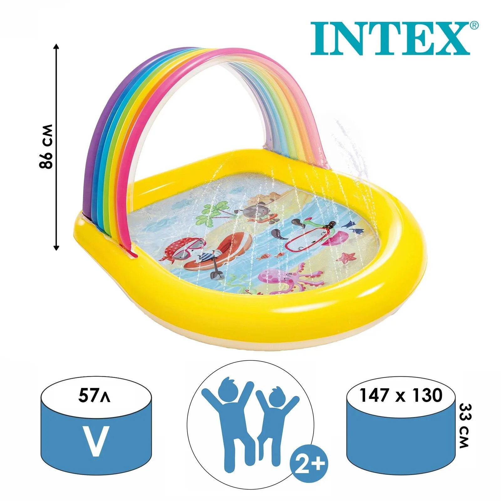 Бассейн INTEX, с аркой радугой, с распылителем, от 2 лет, 147х130х86 см (И57156)