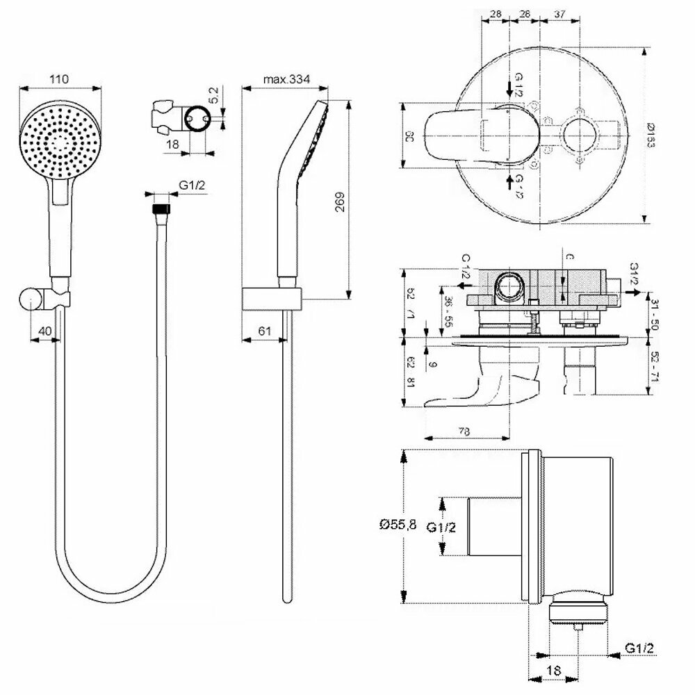 Душевой комплект Ideal Standard Ceraflex Set 4в1 (A6758AA + B2239AA + BA193AA + B9448AA) BC447AA