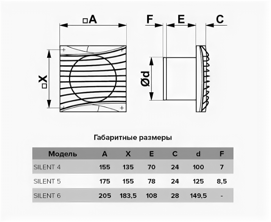 Вентилятор осевой вытяжной с обратным клапаном для кухни/ванной DICITI SILENT 5C Gray Metal Серебристый D125 10В