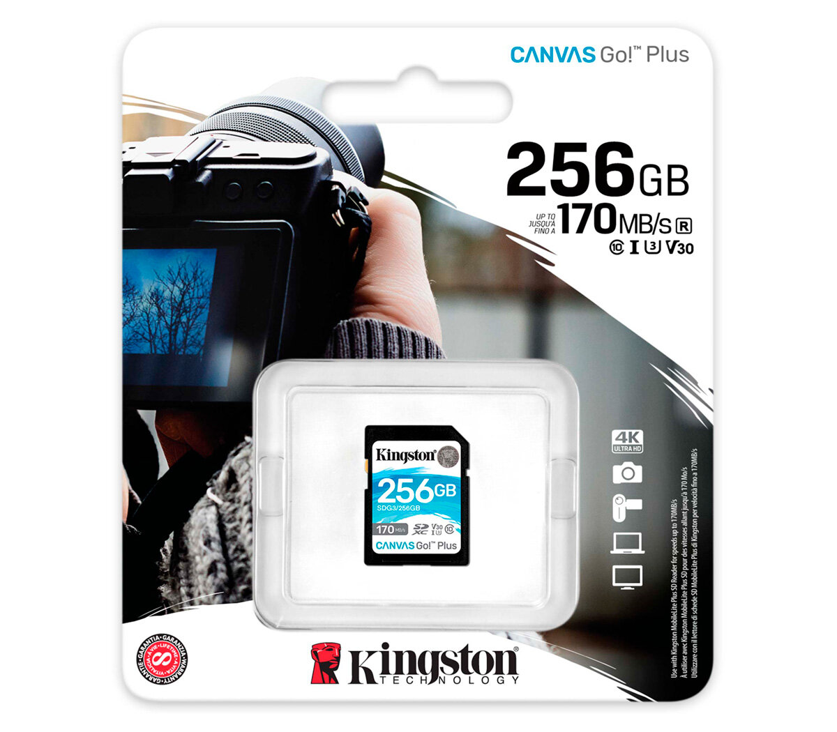 Карта памяти SDXC UHS-I U3 Kingston Canvas Go! Plus 256 ГБ, 170 МБ/с, Class 10, SDG3/256GB, 1 шт., без адаптера