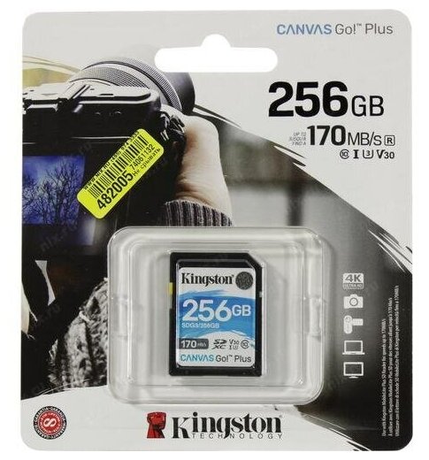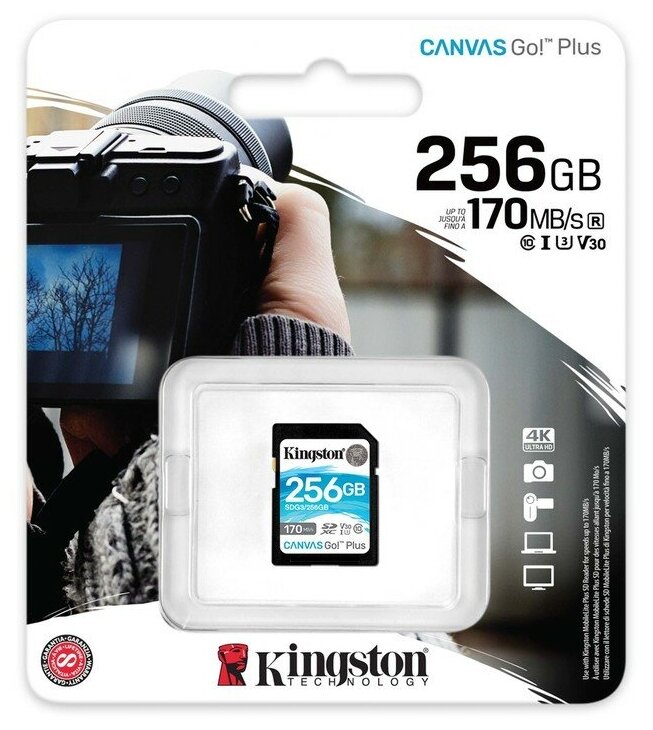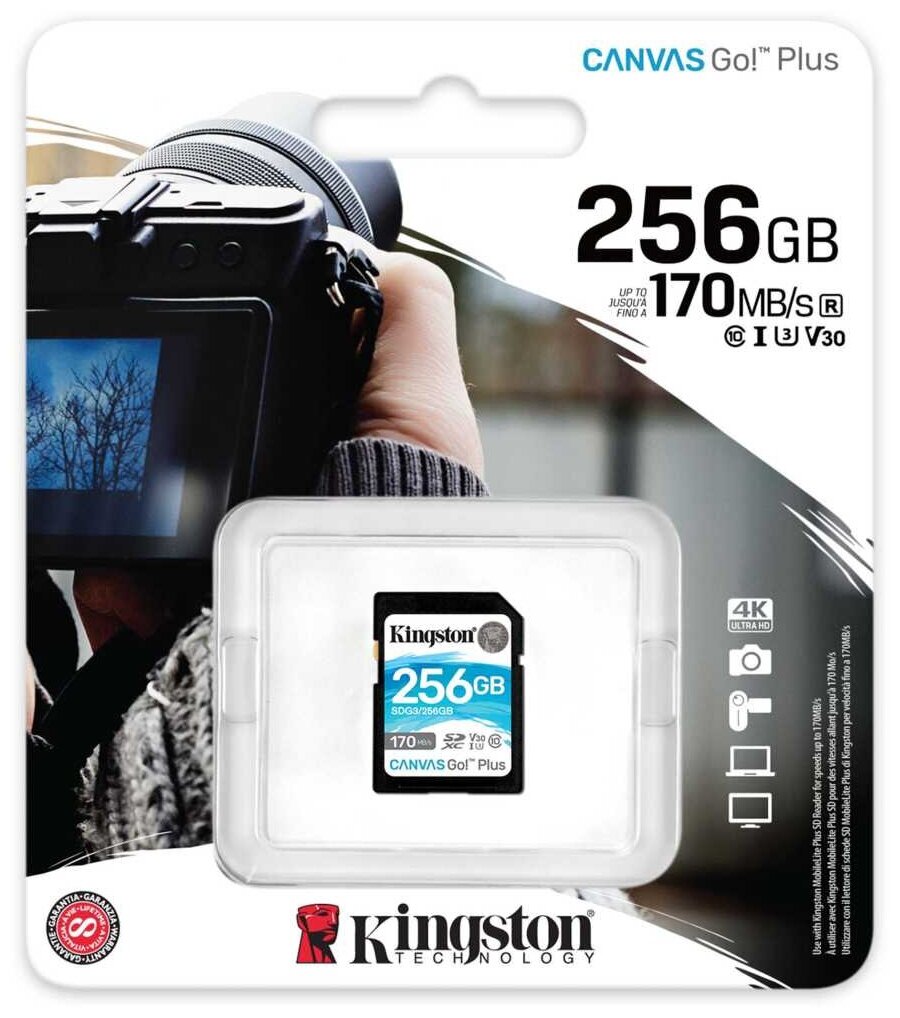 Карта памяти SDXC UHS-I U3 Kingston Canvas Go! Plus 256 ГБ, 170 МБ/с, Class 10, SDG3/256GB, 1 шт., без адаптера