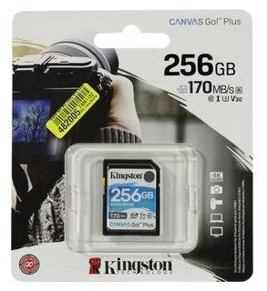 Карта памяти Kingston Canvas Go! Plus SDG3/256GB Class 10, 256Gb, SDXC, UHS-I U3 A2 V30, запись: 90 Мб/с, чтение: 170 Мб/с