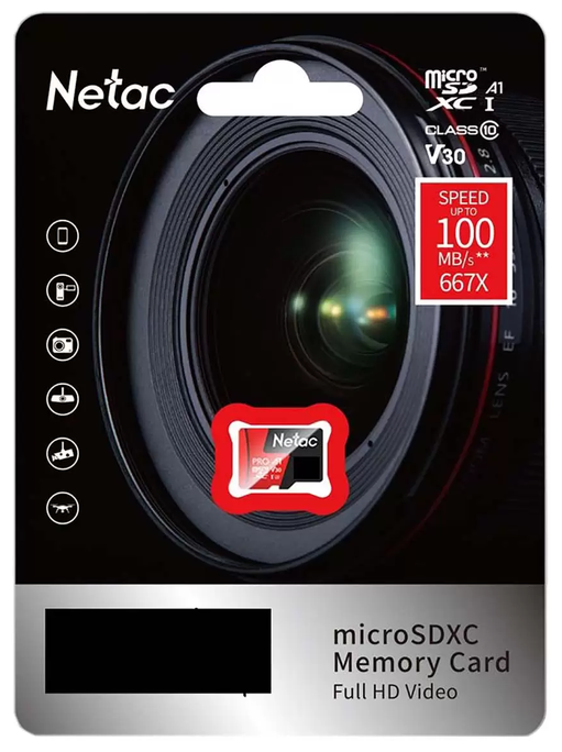 MicroSDHC 64Gb Netac P500 Extreme Pro A1 V10 Class 10 Uhs-i (u1), Nt02p500pro-064g-r, R100Mb/s, SD а .