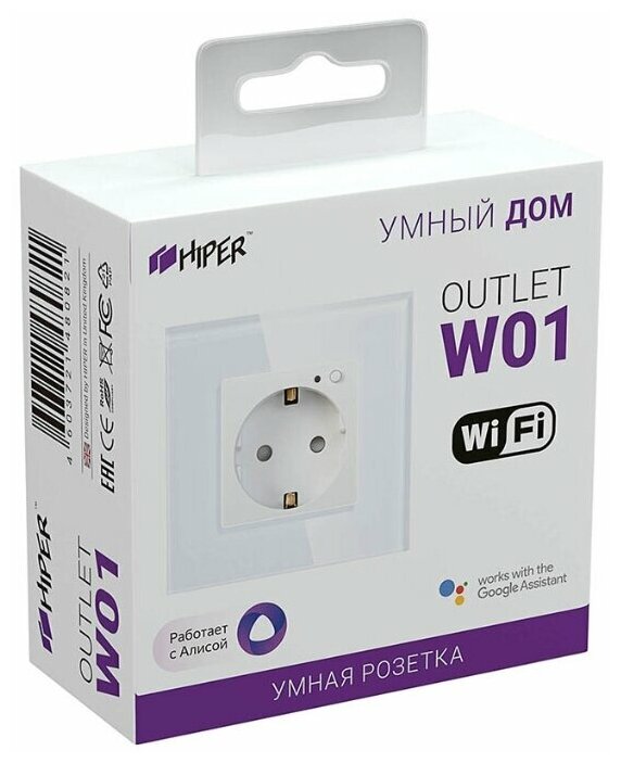 Розетка HIPER IoT Outlet W01 HDY-OW01 Wi-Fi 2,4 ГГц, IEEE802.11b/g/n, AC 100-250В, 10А; 50 Гц, 2500 Вт (250В/10А), белая