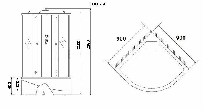 Кабина душевая NG-8308-14 (900х900х2100) выс под(40см), стекло матовое