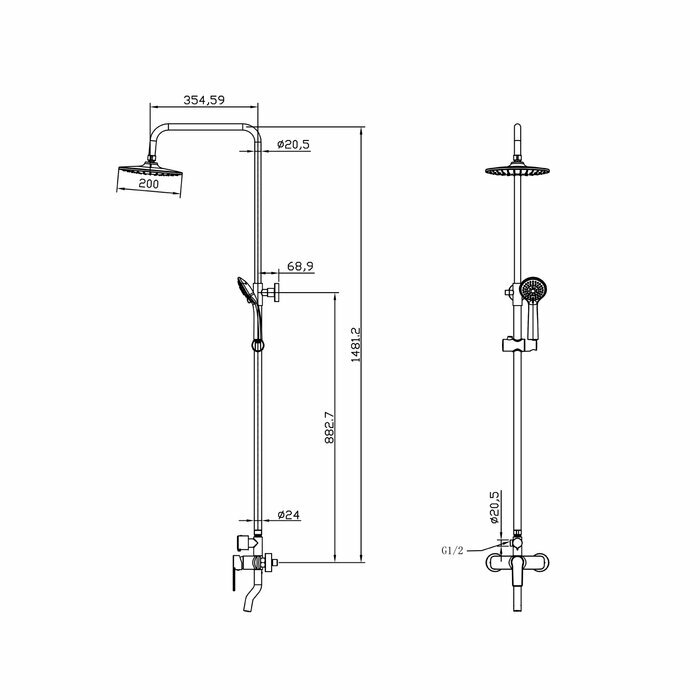 Душевая система 200 мм Milardo Helic HELSB1FM06