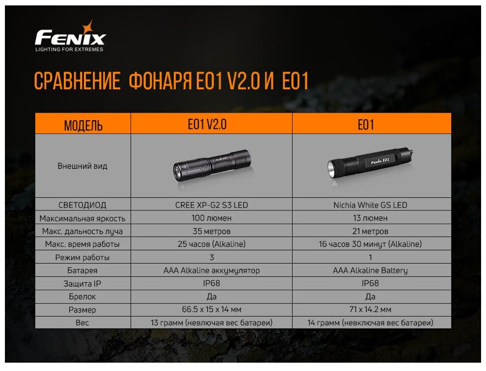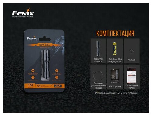 Фонарь Fenix E01 V2.0, черный, E01V20BLK