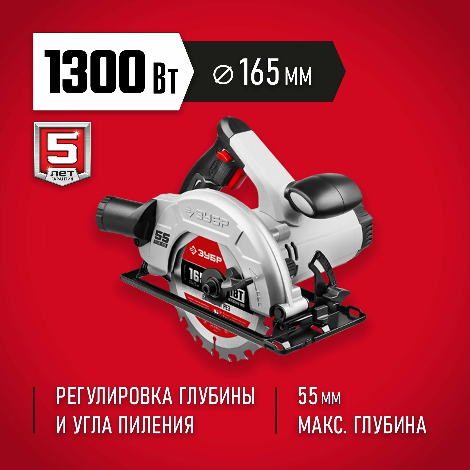 Циркулярная пила ЗУБР 165 мм 1300 Вт ПД-55