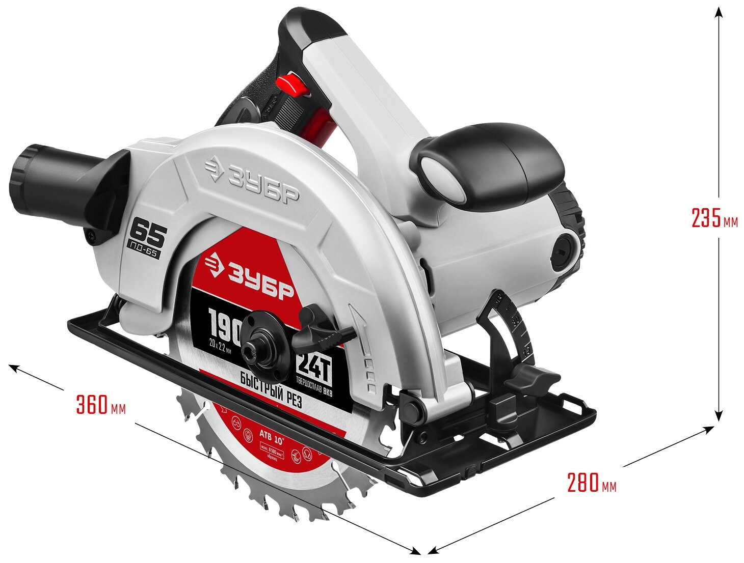 Пила дисковая ЗУБР ПД-65, диск 190 мм, 1600 Вт