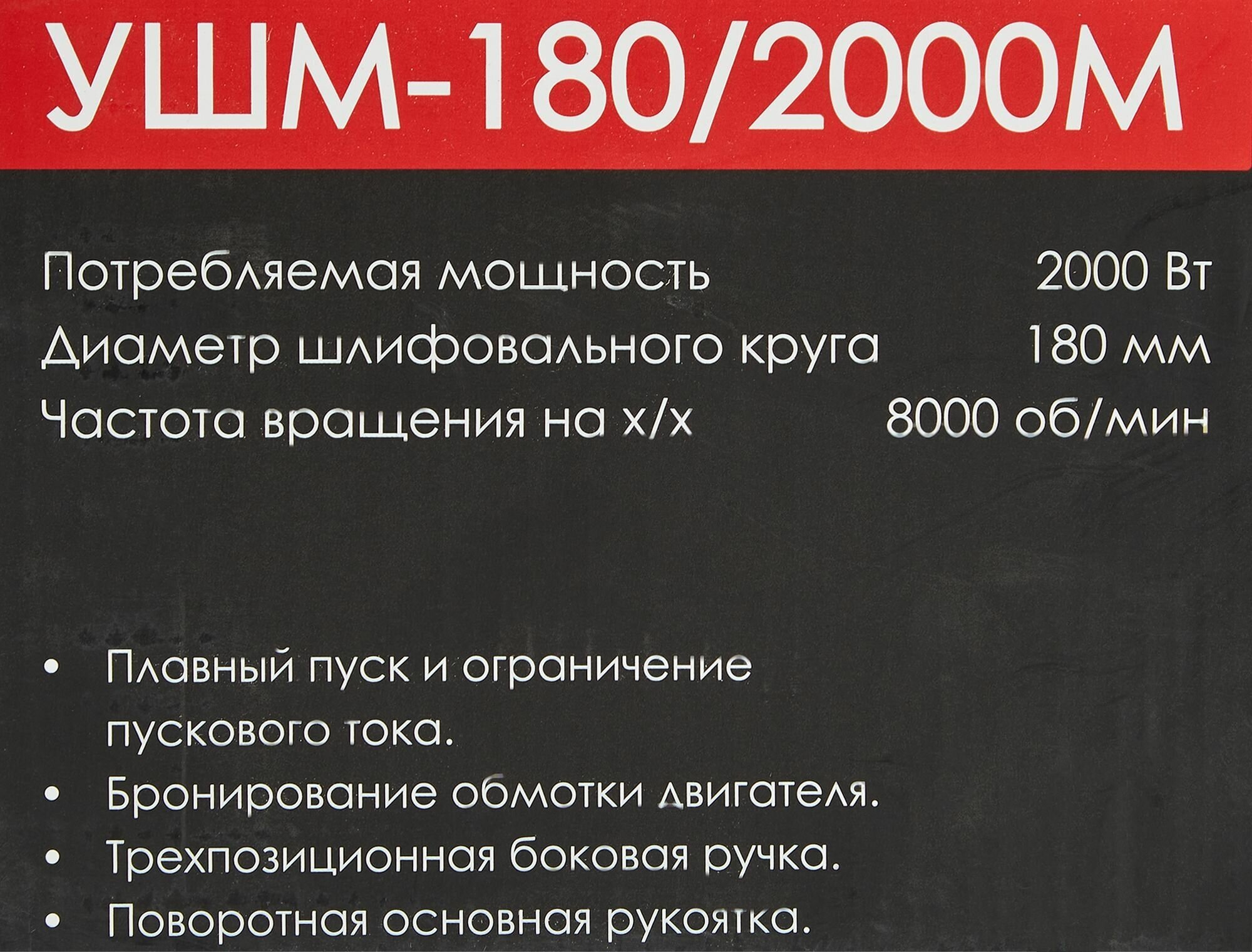 Углошлифовальная машина Интерскол УШМ-180/2000М, 2000 Вт, 8000 об/мин