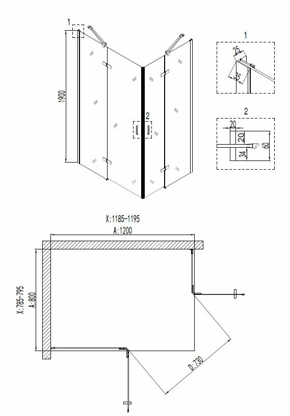 Andora Душевое ограждение NG- 6617-08 (120*80*190) прямоугольное, двери распашные, 1 место душевые кабины в Курчатов