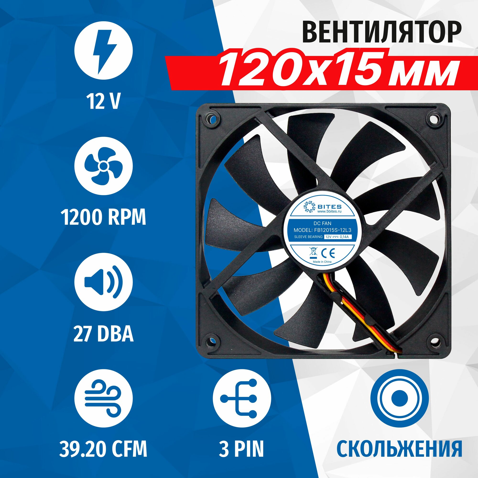 5bites Вентилятор FB12015S-12L3 120X15 / Sleeve / 1200RPM / 3P .