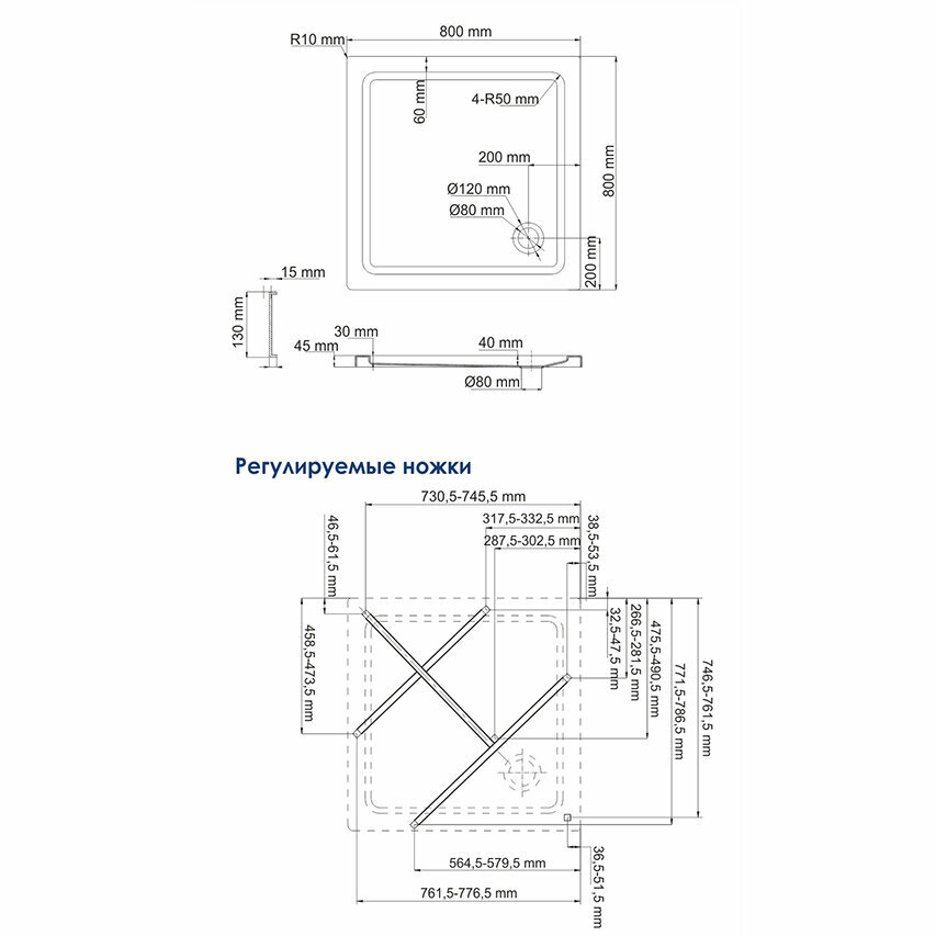 Душевой поддон квадратный WasserKRAFT Amper 29T02 80
