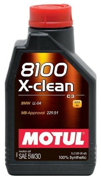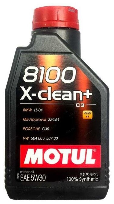 MOTUL 106376 MOTUL 5W30 8100 X-clean + (1L)_масло мотор.! синт.\ACEA C3, VW 507.00/504.00, Porsche C30, MB 229.51 1шт