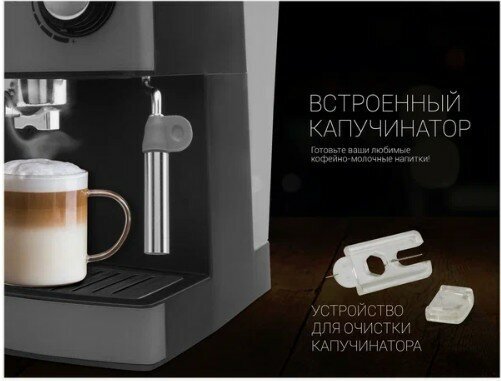 Кофеварка рожковая Polaris PCM 1527E Adore Crema с ручным капучинатором, серый