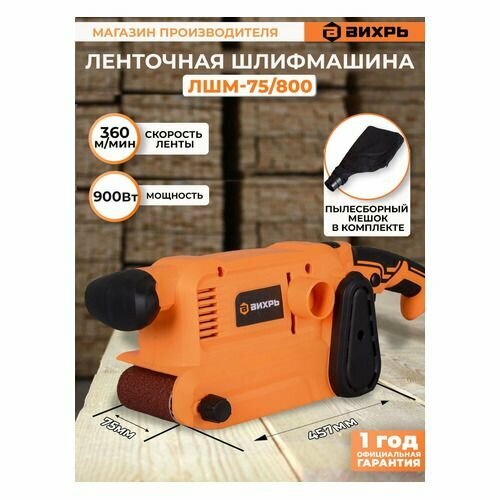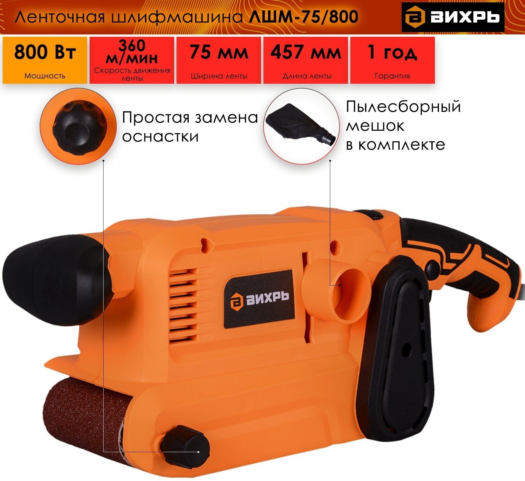 Ленточная шлифовальная машина Вихрь ЛШМ-75/800 800Вт (ширина ленты 75мм)