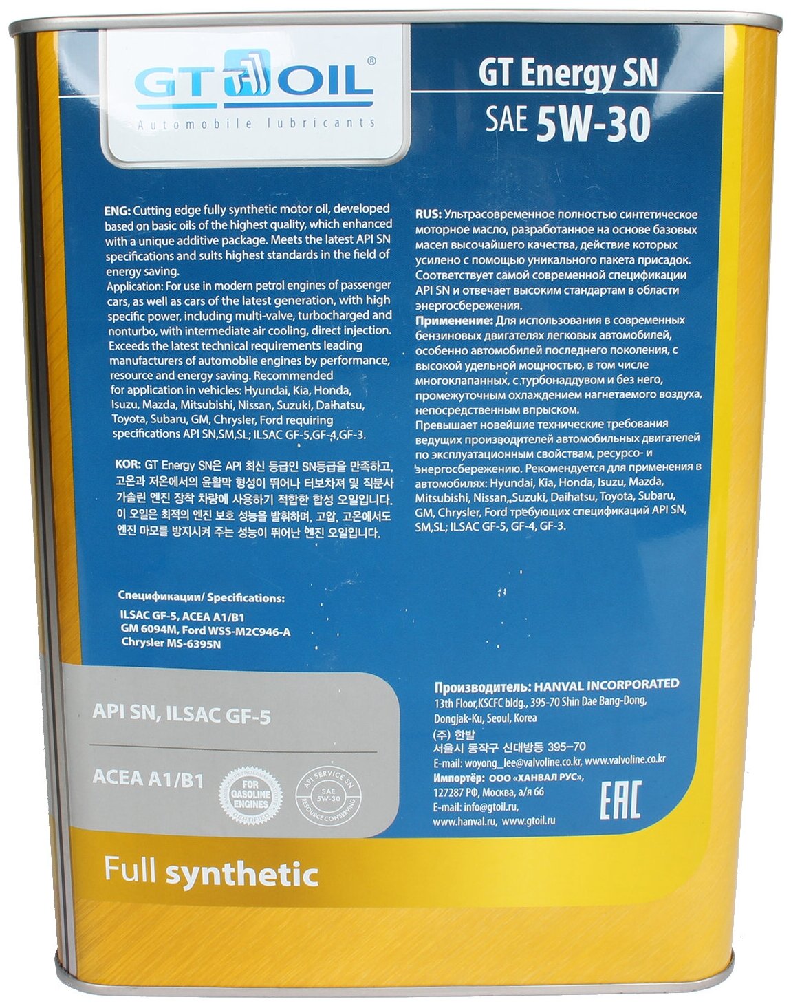 Масло моторное gt oil gt energy sn 5w-30 синтетическое 4 л 8809059407257