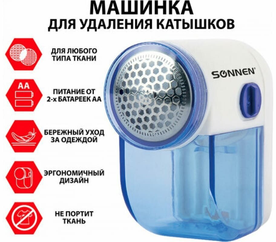 Цена для г. Курчатов. Машинка для удаления катышков SONNEN FS-8808, выполненная в современном дизайне, подарит одежде вторую жизнь! Компактный миниклинер SONNEN FS-8808 бело-синего цвета сделан из ABS пластика, а лезвия и сетка из нержавеющей стали. Питается прибор от двух AA батареек 1.5V каждая (НЕ В комплекте!). Диаметр рабочей поверхности - 38 мм. Переключатель ON/OFF находится на левой стороне корпуса - удобно держать и переключать одной рукой. Миниклинер оснащен съемным резервуаром для срезанных катышков. Магазины в городе Курчатов смотрите ниже