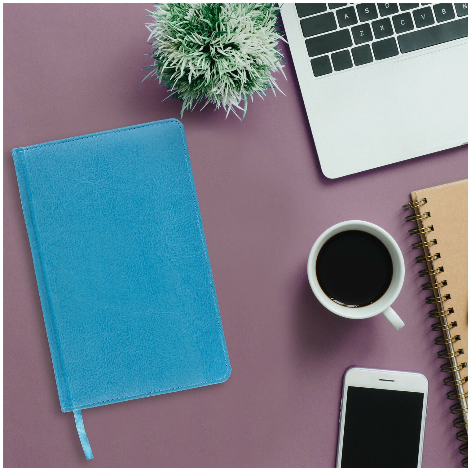 Ежедневник недатированный А5 (138x213мм) BRAUBERG Rainbow, кожзам, 136л, бирюзовый, 111666