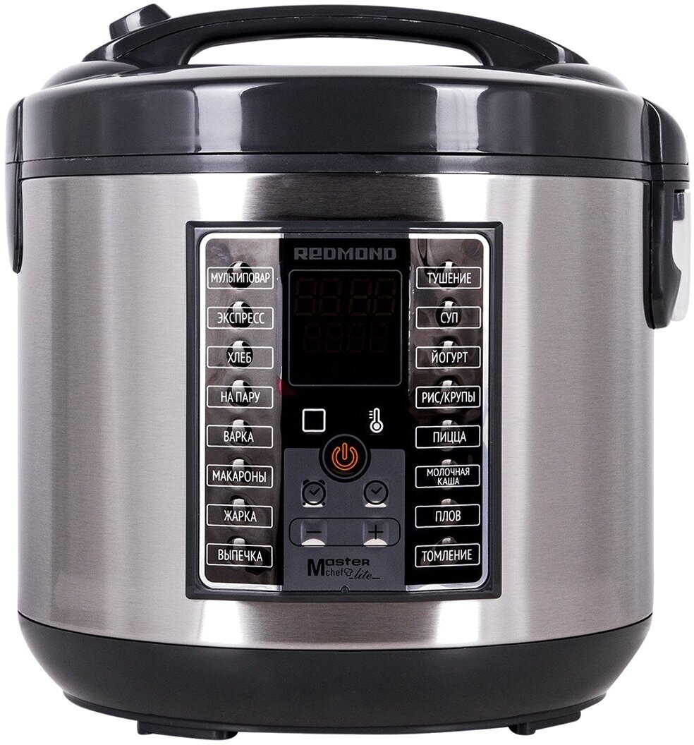 Мультиварка REDMOND RMC-M25, 860 Вт, 5 л, 16 программ, антипригарное покрытие, черная/сталь