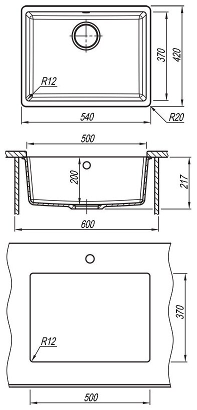 Мойка кухонная Florentina под столешницу Вега 500 540х420х217 Антрацит