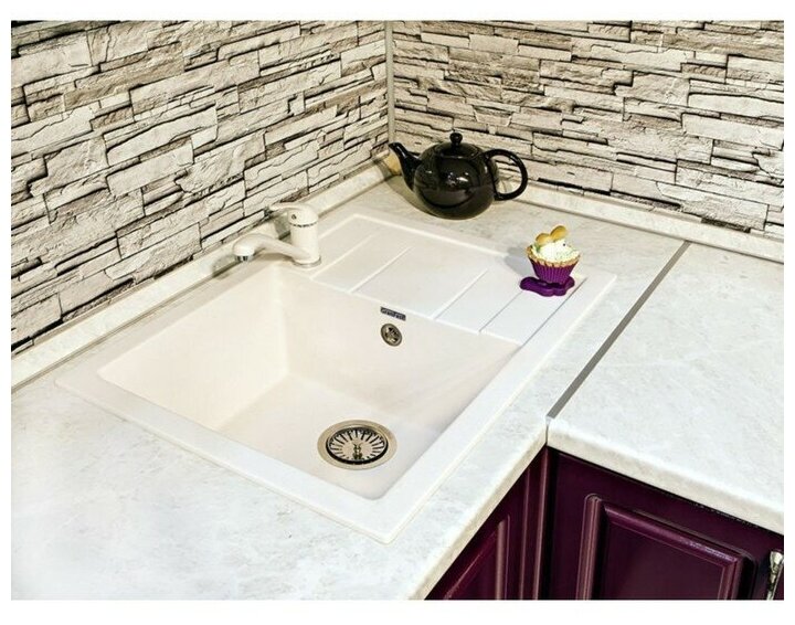 GRANFEST Мойка мрамор QUADRO GF Q 650L чаша с крылом 650*500мм белый