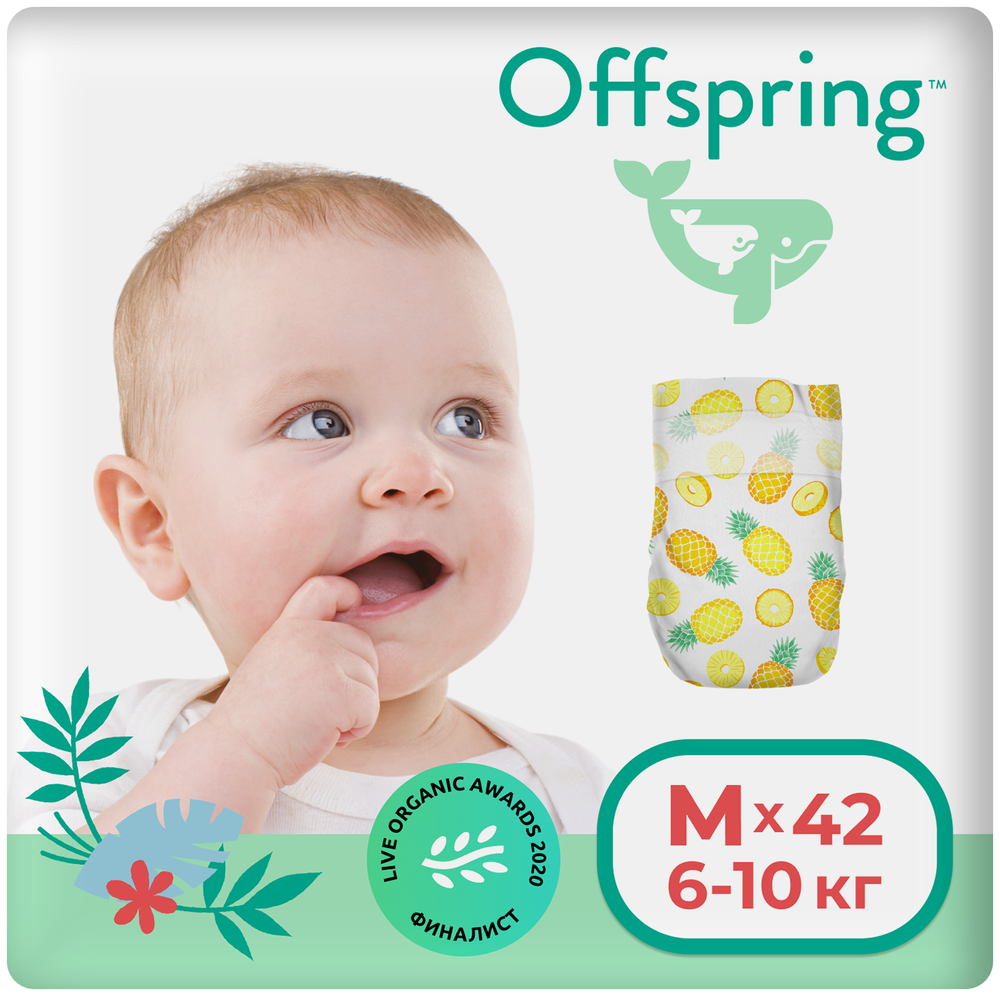 Подгузники Offspring расцветка Ананасы M (6-10 кг.), 42 шт.