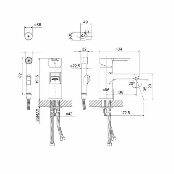 Смеситель для умывальника с гигиеническим душем Sena SENSB00i08 IDDIS,