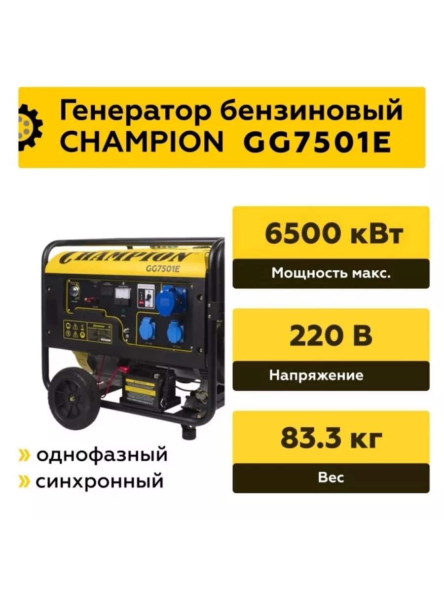 Бензиновый генератор CHAMPION GG7501E, (6500 Вт)