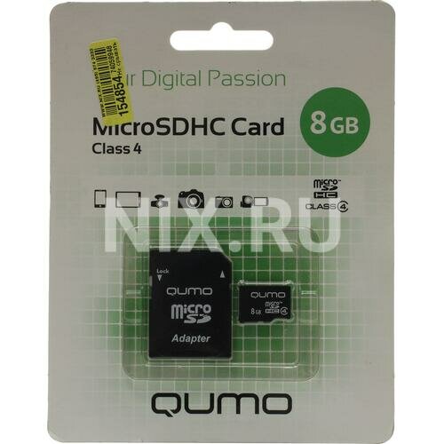 Qumo Карта флэш-памяти MicroSD 8 Гб Qumo +SD адаптер (class 4) карта памяти в Курчатов