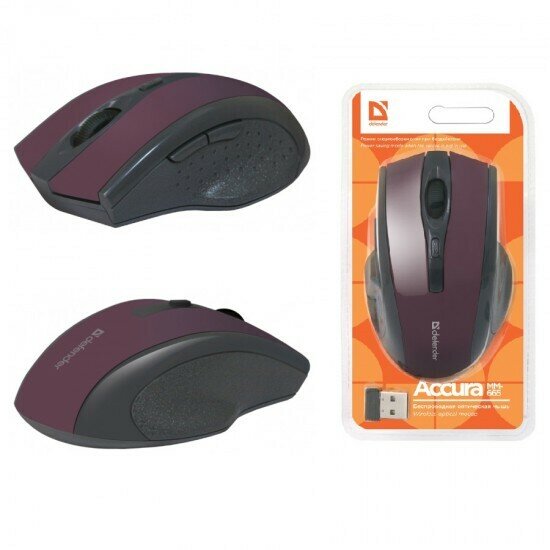 Мышь беспроводная Defender MM-665 Accura, средняя - чёрно-бордовая