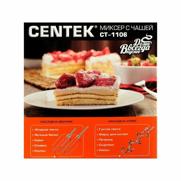 Миксер с чашей Centek CT-1106, 320Вт, 3.5л, 5 скор+турбо, взбивание/замешивание, белый