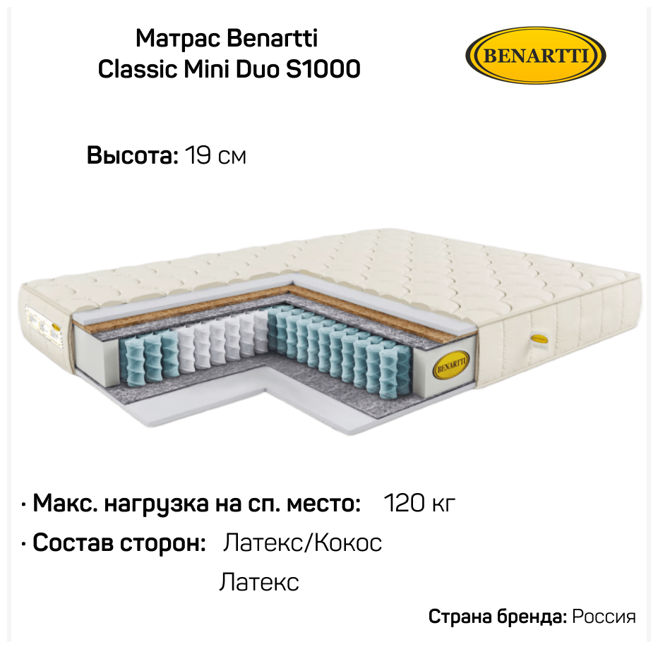 Матрас Benartti Classic Mini Duo S1000, Размер 190х186 см