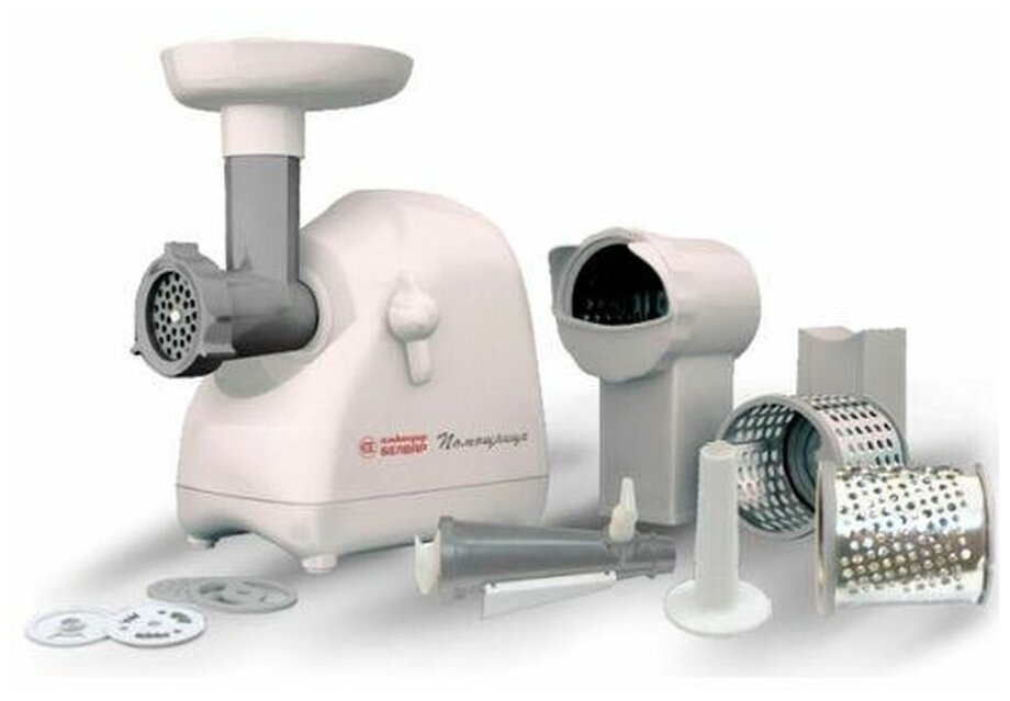 Мясорубка Белвар Помощница КЭМ-П2У 302-09, белый, макс. мощность 1500 Вт, реверс, шинковка, соковыжималка для мягких ягод и томатов,.насадка для теста, колбас