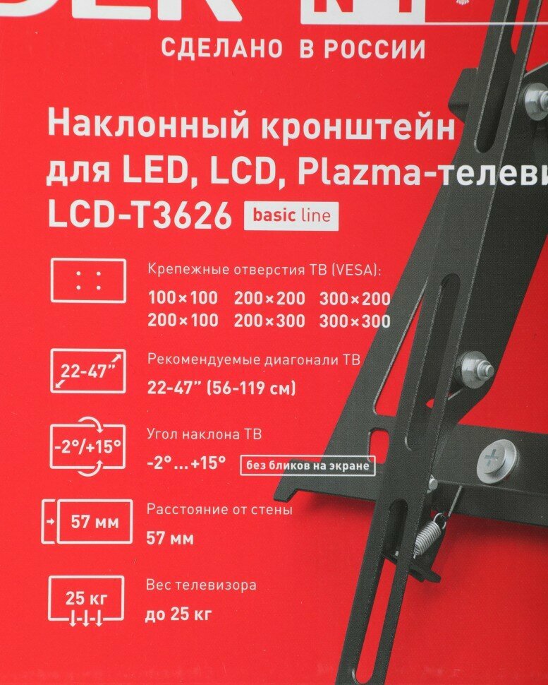Кронштейн Holder T3626-B черный для ЖК ТВ 22-47 настенный наклон до 25 кг