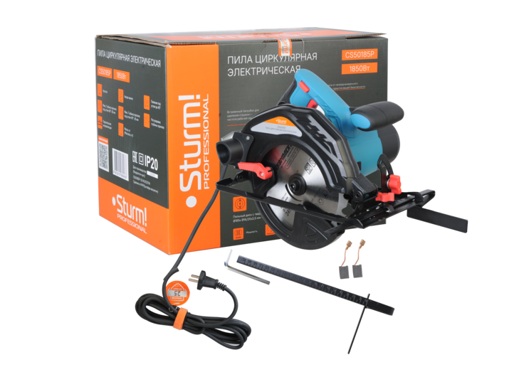 CS50185P Пила циркулярная 1850Вт, ТПД 185*16/20мм, пропил 65мм, вес 4,3кг, сбор пыли, Sturm