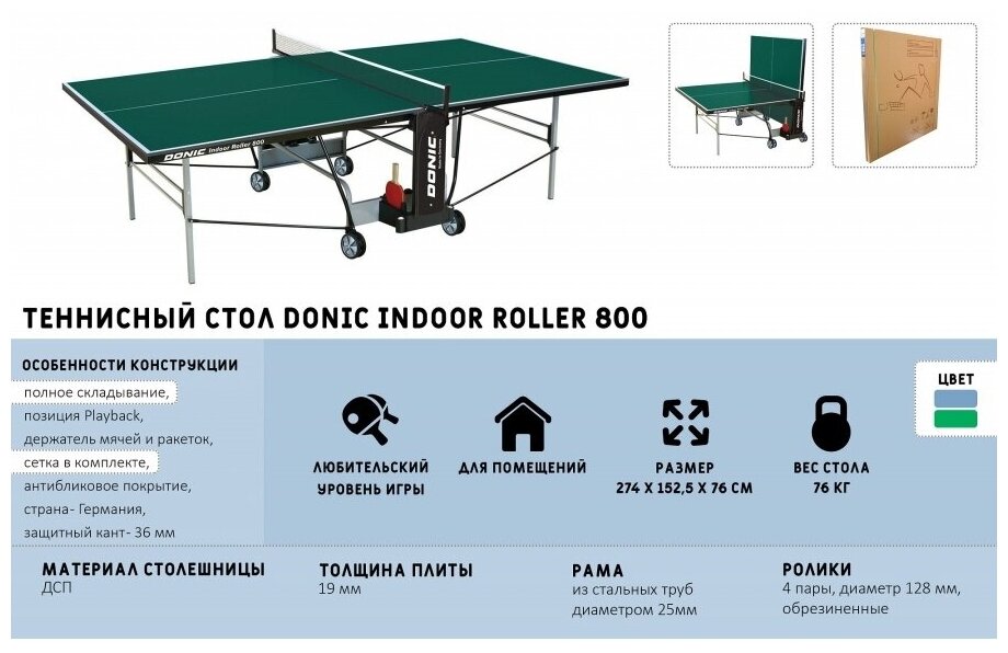 Donic DONIC Теннисный стол Donic Indoor Roller 800 зеленый теннисный стол в Курчатов