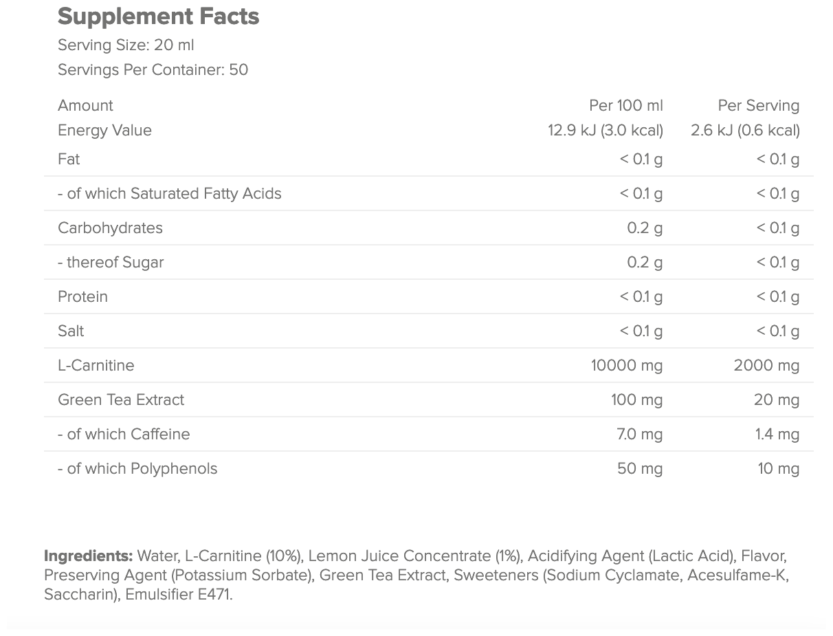 MAXLER EU L-Carnitine 2000 Vegan Product 1000 мл (Lemon-Green Tea Flavor)