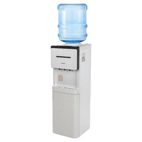 Кулер для воды SONNEN FSE-03, напольный, нагрев/охлаждение электронное, шкаф, 3 крана, белый/черный, 453979