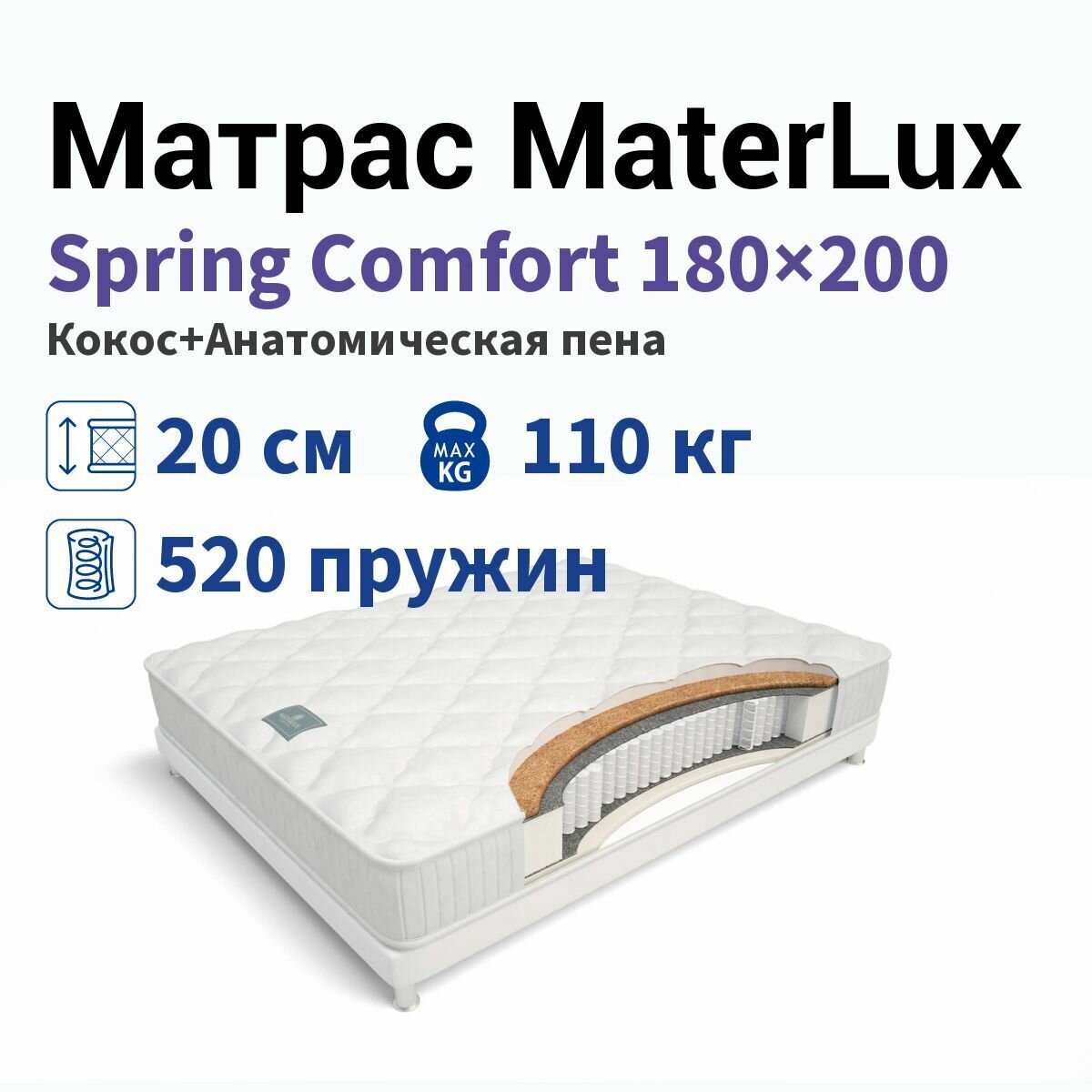 Матрас MaterLux Spring comfort 160х200, стандартный